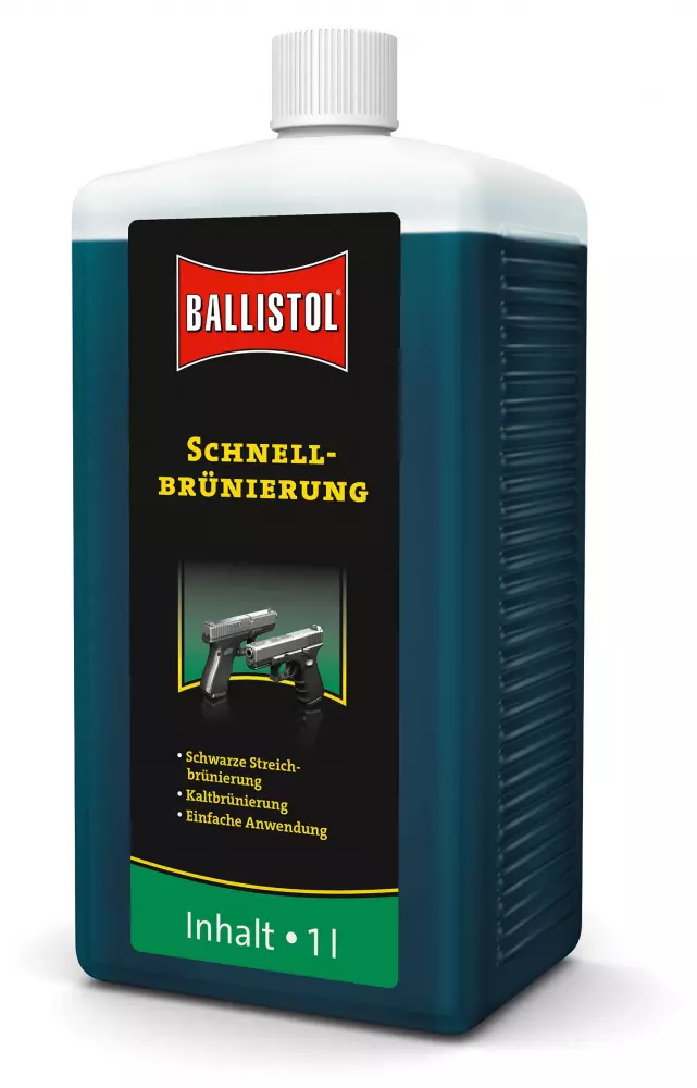 Mit der Schnellbrünierung können Sie Stahl bis zu 3% Chromgehalt und Eisen fleckenlos brünieren. Egal, ob beschädigte Brünierungen an Lang- und Kurzwaffen, ob komplette Waffenbrünierung oder die Brünierung von kleinen Bauteilen in Handwerk und Industrie; Ballistol Schnellbrünierung ist eine Streichbrünierung und erspart deshalb langwierige Brünierbäder, Zeit und Geld.