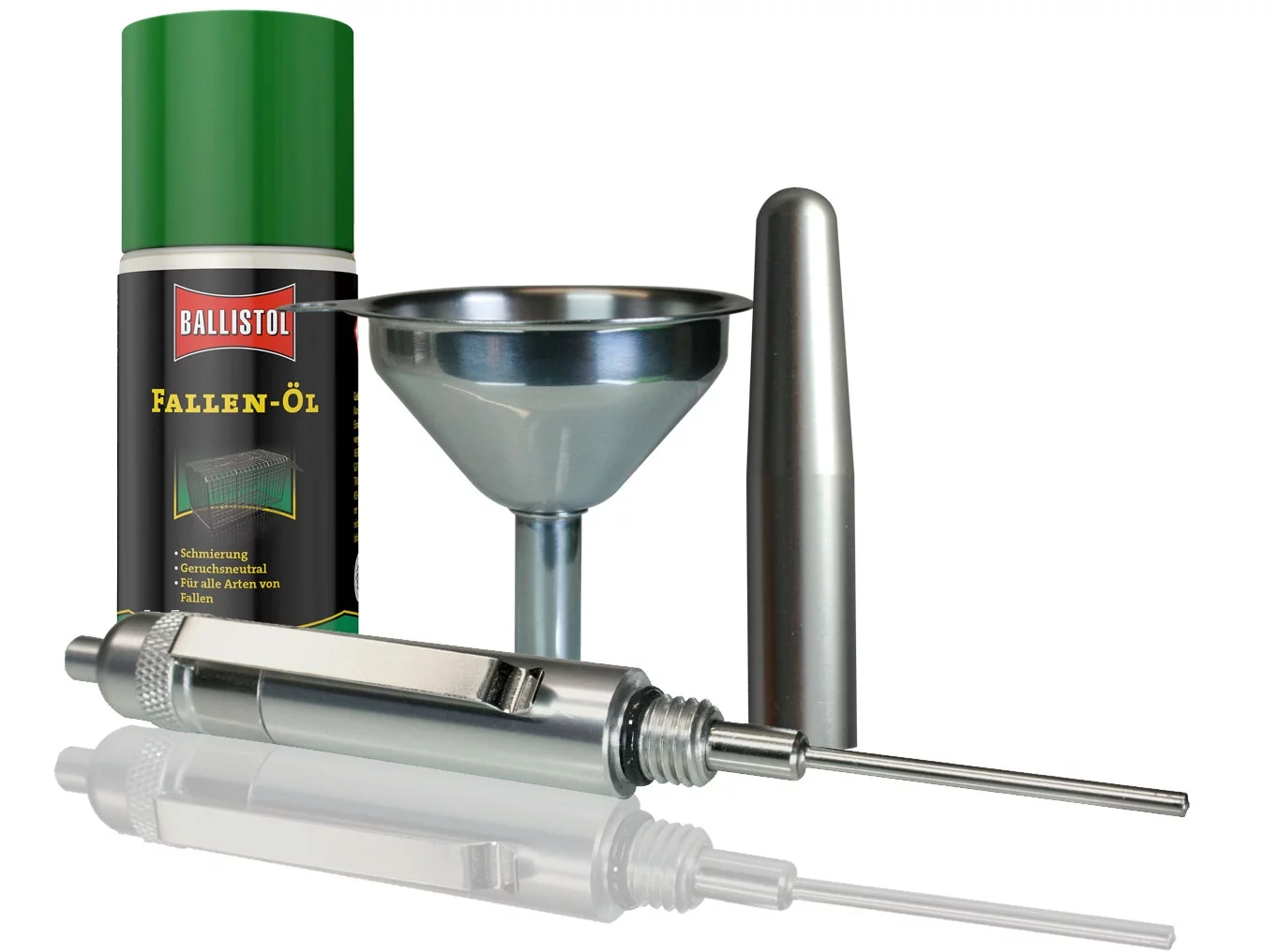 Apply trap oil in the nature sparingly. Even if the oil as in the case of Ballistol trap oil is completely biodegradable, it is useful to lubricate targeted. A clean and precise possibility is the Sommerhoff-Precision-Oil-Pen that you get here in a favourable complete kit with Ballistol Trap Oil and a perfectly fitting funnel of stainless steel.