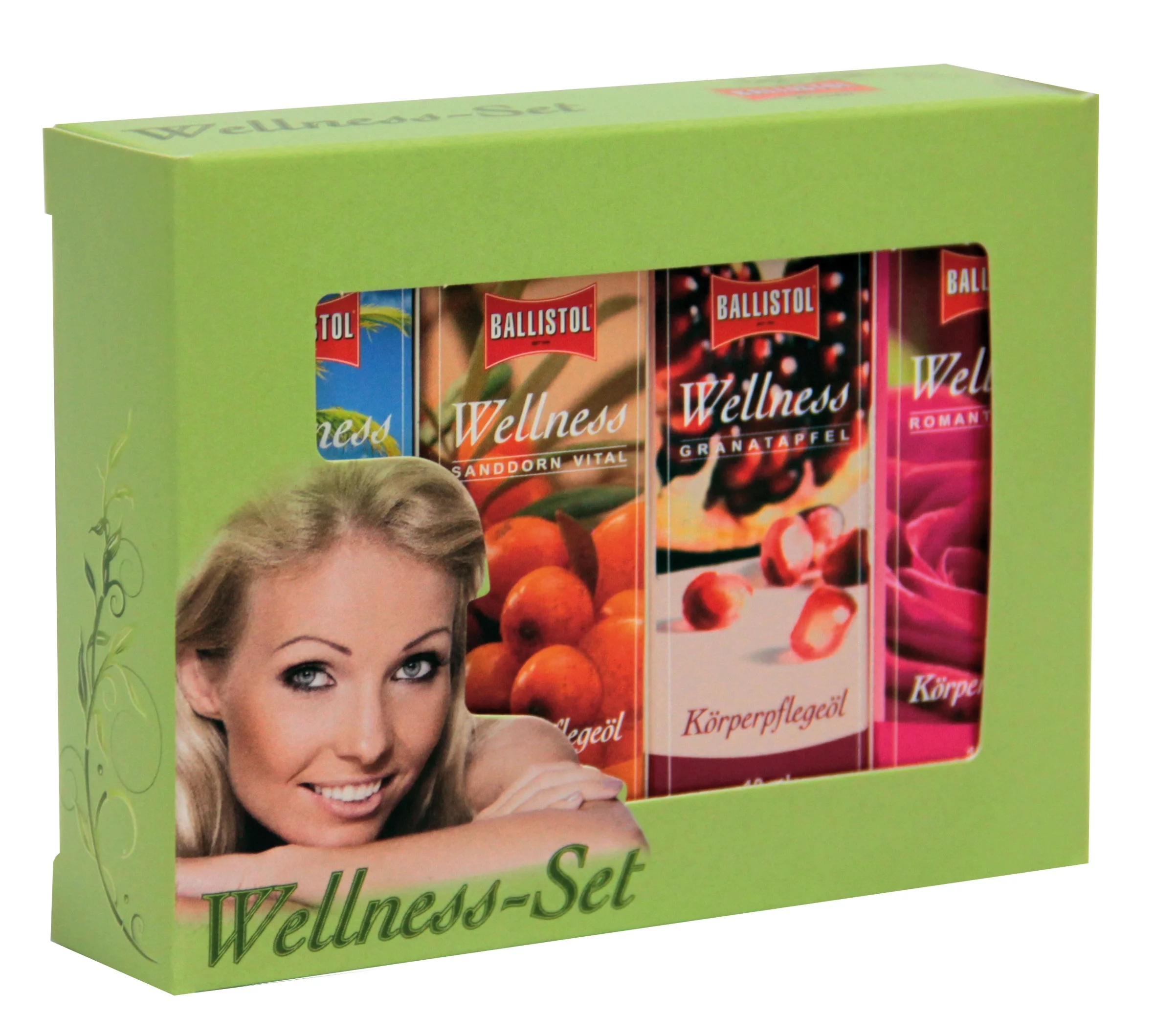 Kleines Wellness Set von Ballistol mit allen vier Sorten der Wellness-Öle in einer schönen Geschenkbox.