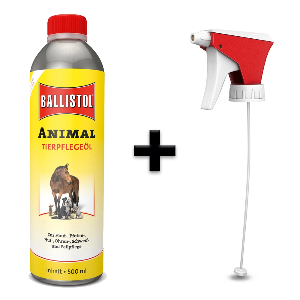 Lieferumfang: 500 ml Ballistol Animal Tierpflegeöl inklusive passendem Pumpsprühkopf zum Aufschrauben.