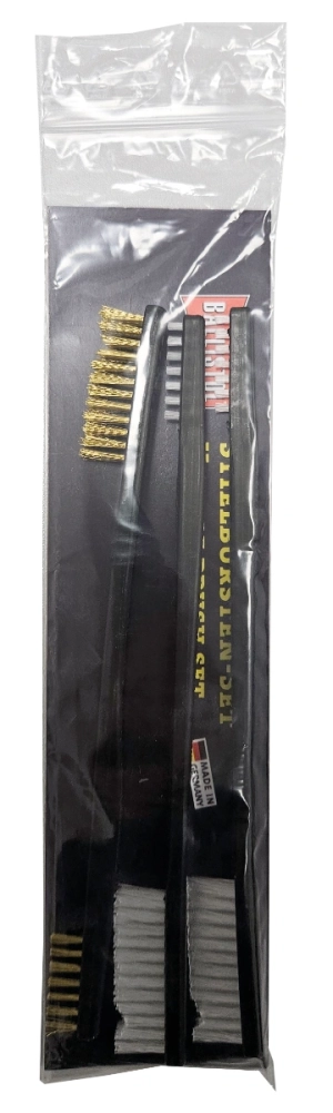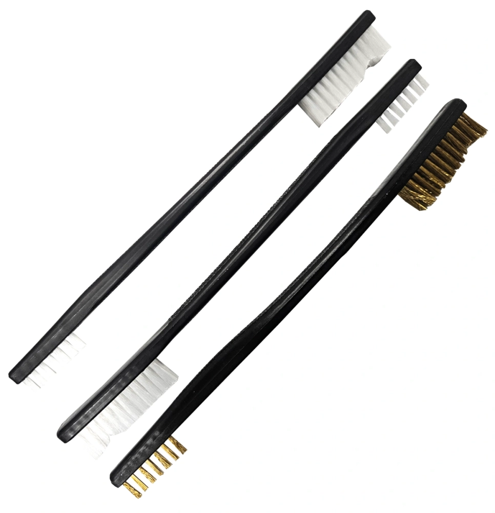 Im Set befindet sich eine doppelseitige Messingbürste, die selbst festsitzende Ablagerungen effektiv löst, ohne unnötigen Abrieb an empfindlichen Metallflächen zu verursachen. Sie eignet sich besonders für Laufbereiche, Patronenlager und mechanische Komponenten. Ergänzt wird sie durch zwei doppelseitige Nylonbürsten, die speziell für sensible Zonen und die abschließende Feinreinigung konzipiert sind. So lassen sich Oberflächen schonend säubern und Rückstände restlos entfernen.