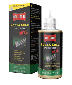 Der Laufreiniger Robla Solo MIL ist die konsequente Weiterentwicklung von Robla Solo, mit dem sich jetzt noch bessere Ergebnisse erzielen lassen – so überzeugend, dass Robla Solo MIL auch bei Sondereinheiten eingesetzt wird. Robla Solo MIL löst selbsttätig und zuverlässig Tombak-, Kupfer-, Zink- und Bleiabschmierungen im Lauf und verbessert so die Schusspräzision, wenn Geschossabschmierungen die Ursache waren. Als bewährter Laufreiniger greift Robla Solo MIL weder Stahl, Nickel noch Chrom an und ist damit für alle Waffen geeignet.