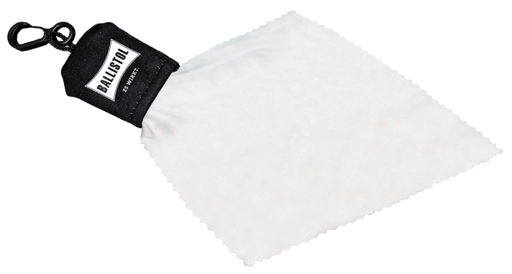 Das beigefarbene Mikrofasertuch steckt geschützt im schwarzen Beutel mit weißem Ballistol Logo-Aufdruck. So bleibt das Tuch sauber verstaut und ist jederzeit einsatzbereit. Sichtprobleme werden sofort beseitigt. Der Schuss bleibt kontrolliert. Die Jagd konzentriert.